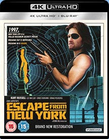 Extras | Disc 2 (BD): Audio Commentary with John Carpenter & Kurt Russell Audio Commentary with producer Debra Hill & production designer Joe Alves Audio Commentary with Adrienne Barbeau & director of photography Dean Cundey The Film in 1080p Disc 3 (BD): Documentary: Purgatory - Entering John Carpenter's Escape From New York Featurette: Snake Plissen - Man of Honour Featurette: Big Challenges in Little Manhattan - Visual Effects Interview: I Am Taylor, with Joe Unger Deleted Opening Sequence: Snake’s Crime (with optional commentary) Original Trailers Photo Gallery |